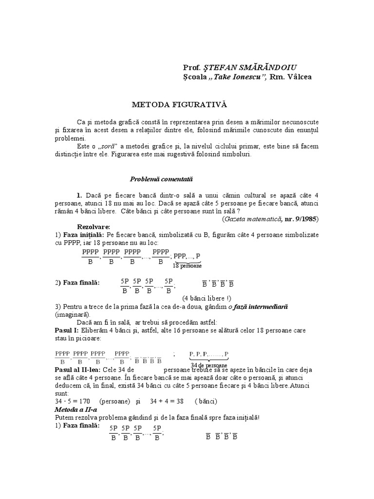 Metoda figurativă probleme cu trei numere necunoscute author cristina stanimir published on february 18 2017 leave a comment e al patrulea filmuleț din seria problemelor care se rezolvă prin metoda figurativă care prezintă rezolvarea problemelor în care apar trei numere necunoscute. Documentul conține o fișă de lucru care conține sase probleme care se rezolvă prin metoda figurativă. Am folosit o la matematică în perioada de recapitulare la începutul clasei a iv a. 3 sa utilizeze fracţiile pentru a exprima subdiviziuni ale intregului.