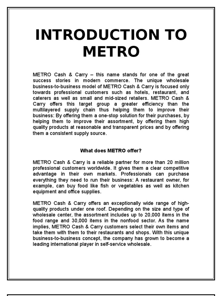 In july 2012 metro and makro habib combined their wholesale business in pakistan marking the beginning of a long term partnership to the mutual benefit of both companies. Metro cash and carry india private limited address of the registered office. The cash and carry concept is based around self service and bulk buying targets business owners. Therefore metro focuses its efforts constantly on the needs of its professional customers offering tailor made services and a wide range of products in 34 countries with over 670 store locations.