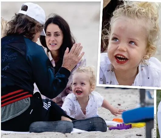 After being forced to cancel his rolling stones tour due to illness mick jagger relaxes on the beach with his girlfriend melanie hamrick left their son deveraux and daughter georgia may high five.