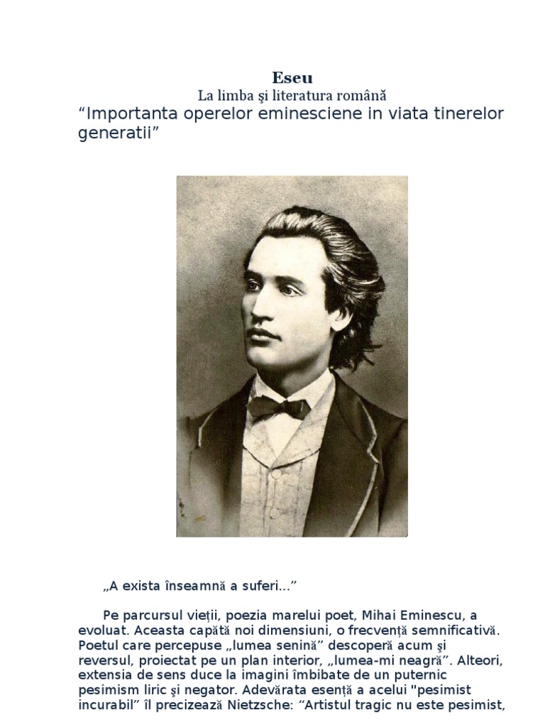 Referate poezii mihai eminescu mai jos o sa aveti mai multe rezultate pentru cautarea referate poezii mihai eminescu. în 1860 absolvind clasa a iv a este elev la k k. Mihai eminescu o biografie pe scurt 1850. 1858 1860.