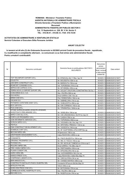 Ministerul finantelor publice anaf. Modificarea neautorizata a acestui site web constituie infractiune si se pedepseste conform legii nr 8 1996 si art 42 din legea nr 161 2003 titlul 3. Pentru o mai buna comunicare cu contribuabilii singurul canal de informare pe internet al directiei generale a finantelor publice iasi va fi sectiunea proprie de pe portalul anaf www anaf ro. Plan de măsuri pentru eficientizarea colectării veniturilor la bugetul general consolidat. Strategia națională anticorupție 2016 2020.