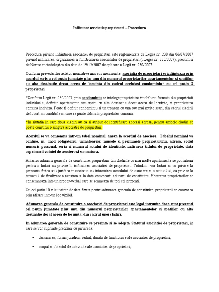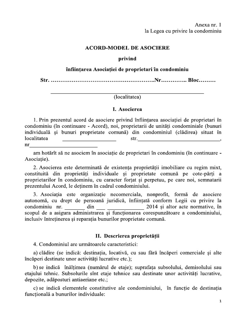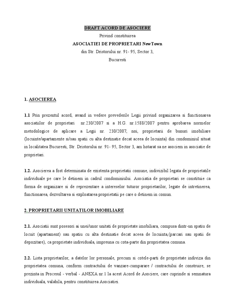 Model acord asociatie de proprietari si locatari. 230 2007 si hg nr. Descrierea proprietăţii 3 1 proprietatea pentru care se constituie asociaţia de proprietari se află la adresa menţionată la punctul1 al acestui acord de asociere. Incepand cu data de 28 septembrie 2018 legea nr.