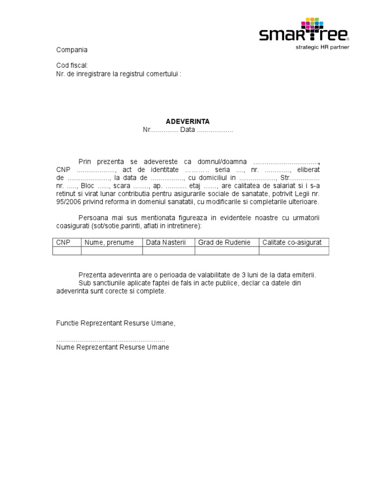 Potrivit legii sanatatii 95 2006 privind reforma in domeniul sanatatii actualizata coasiguratul este persoana care beneficiaza de servicii medicale in sistemul de asigurari de sanatate fara plata contributiei de sanatate datorita faptului ca se afla in intretinerea unei persoane asigurate. Coasigurare declaratie pentru asigurat subsemnatul a cnp act de identitate seria nr eliberat de. Declaratie pe propria raspundere. Daca ai o problema medicala inainte sa te duci la medicul de familie sa poti beneficia de asigurare ai nevoie de adeverinta daca vrei sa beneficiezi de pensie somaj etc ai nevoie de adeverinte.