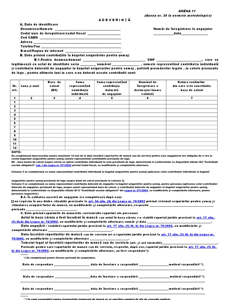 Discuție anexa nr 26 adeverinta somaj vilcu gina articole despre subiect reminder evaluare națională 2018. Din acest motiv am decis să oferim acest model de adeverință pentru a vă ajuta în procesul birocratic cu privire la eliberarea de astfel de documente de la locul de muncă. Coloana 6 se completează cu natura veniturilor din care este constituită baza de calcul al indemnizaţiei de şomaj.
