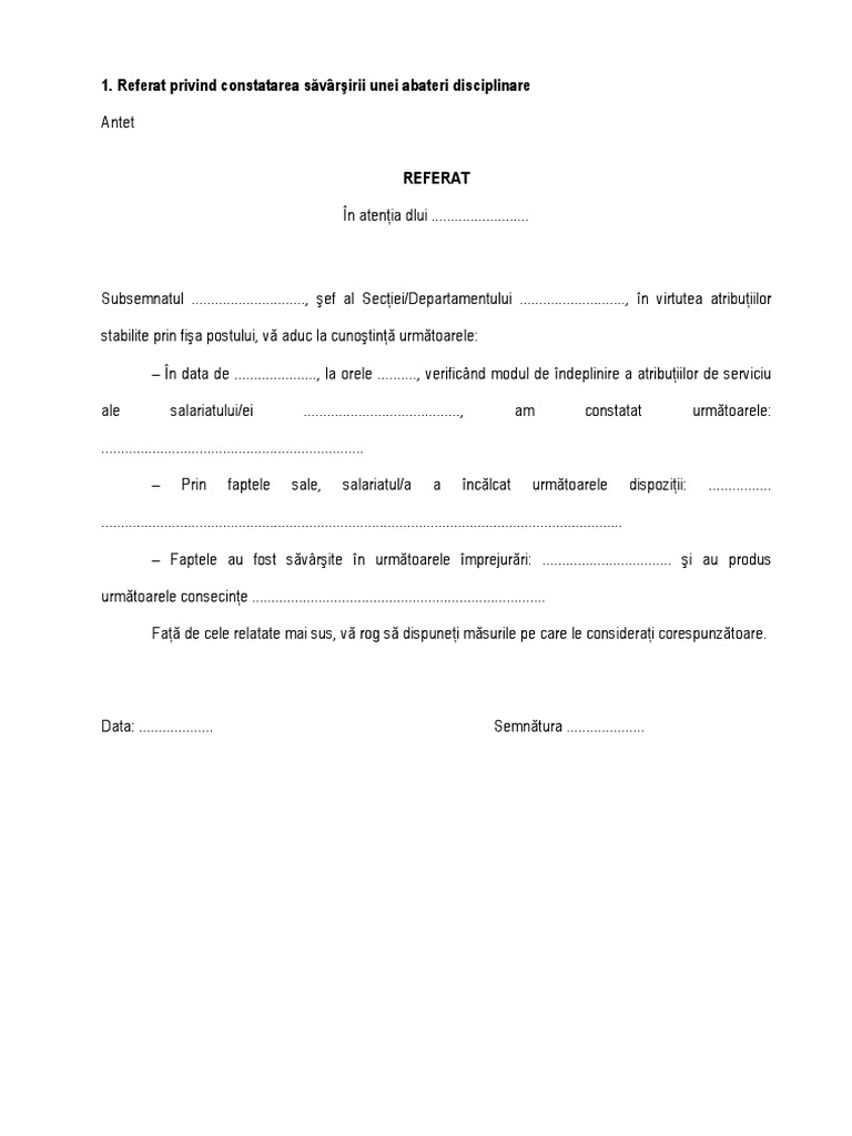 Propune consiliului profesoral spre validare notele la purtare mai muci decât 7. Este intitulat referat avertisment model. Model decizie sanctionare cu avertisment scris. Analizează starea disciplinară stabileşte nota la purtare a fiecărui elev în situațiile în care acestea sunt mai mari sau egale cu 7.