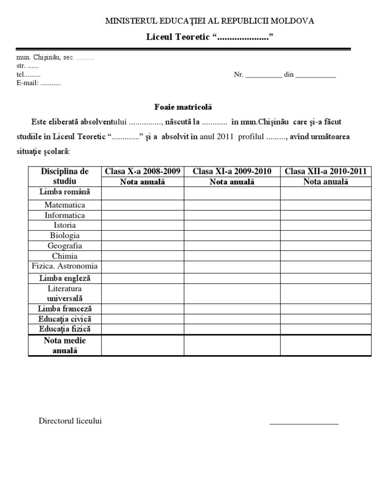 Model Cerere Eliberare Foaie Matricola Liceu
