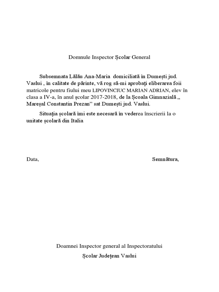 Model cerere transfer elev in strainatate. Se va menţiona ţara în care au fost efectuate studiile şi clasa în care se solicită înscrierea pentru anul şcolar în curs. Potrivit unui ordin de ministru publicat in monitorul oficial si pe edu ro elevii se pot transfera cu avizul consultativ al consiliului de administratie al scolii de la care se face transferul si cu aprobarea consiliului de administratie al scolii la care. Ministerul educatiei a simplificat procedurile prin care elevii se pot transfera de la o scoala la alta sau de la o specializare la alta. 2 16 2012 8 35 00 am company.