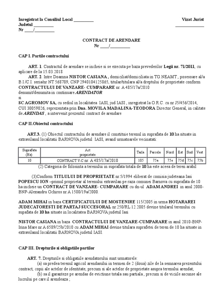 Model Contract Arenda Teren Agricol 2017