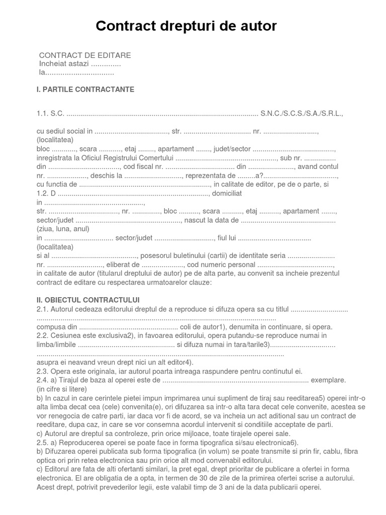 Contractele cu drepturi de autor sunt inca foarte raspandite in romania mai ales in randul agentiilor de marketing si al jurnalistilor. Asociatiile de proprietari noutati 2020. Iar ca si contributii la acest contract de depturi de autor se plateste doar impozitul de 10. Va rog frumos sa mi trimiteti un model de contract de drept de autor aceste drepturi sunt diverse in editura noastra astfel.