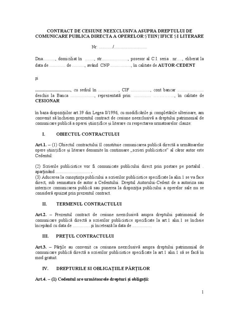 Model contract drepturi de autor 2020. Download model de contract de cesiune drepturi de autor download formular model de contract de cesiune drepturi de autor in format pdf word doc. Cumul venituri din drepturi de autor cu pensie. Contractul de drepturi de autor se inregistreaza la anaf. Model contract drepturi de autor.