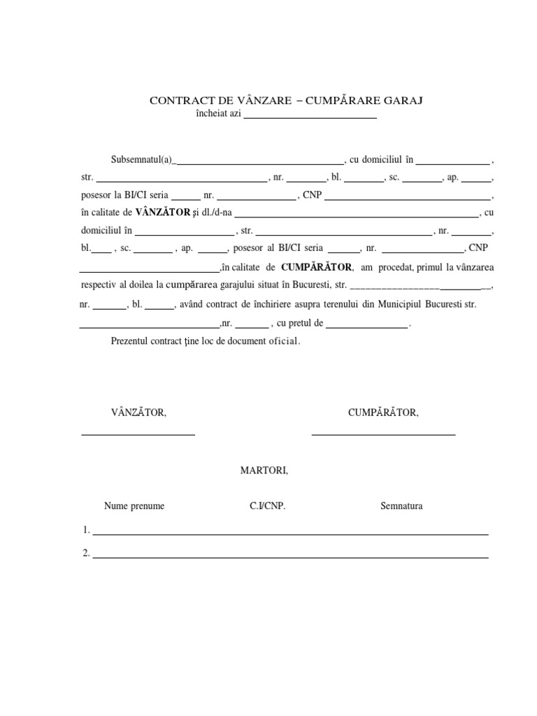 Model contract vanzare cumparare teren cu martori. Model de promisiune bilaterală de vânzare cumpărare a unui imobil. 2 model contract de vanzare cumparare cu plata inainte de livrare model contract de vanzare cumparare cu rezerva proprietatii model contract de vanzare cumparare. Contract de vanzare cumparare de bunuri adaptabil la orice vanzare conventie de revocare a contractului de vanzare cumparare average. Eu declar ca am cumpărat de la imobilul sus menţionat cu preţul de lei pe care l am plătit integral vânzătorului si sunt de acord cu clauzele prezentului contract.