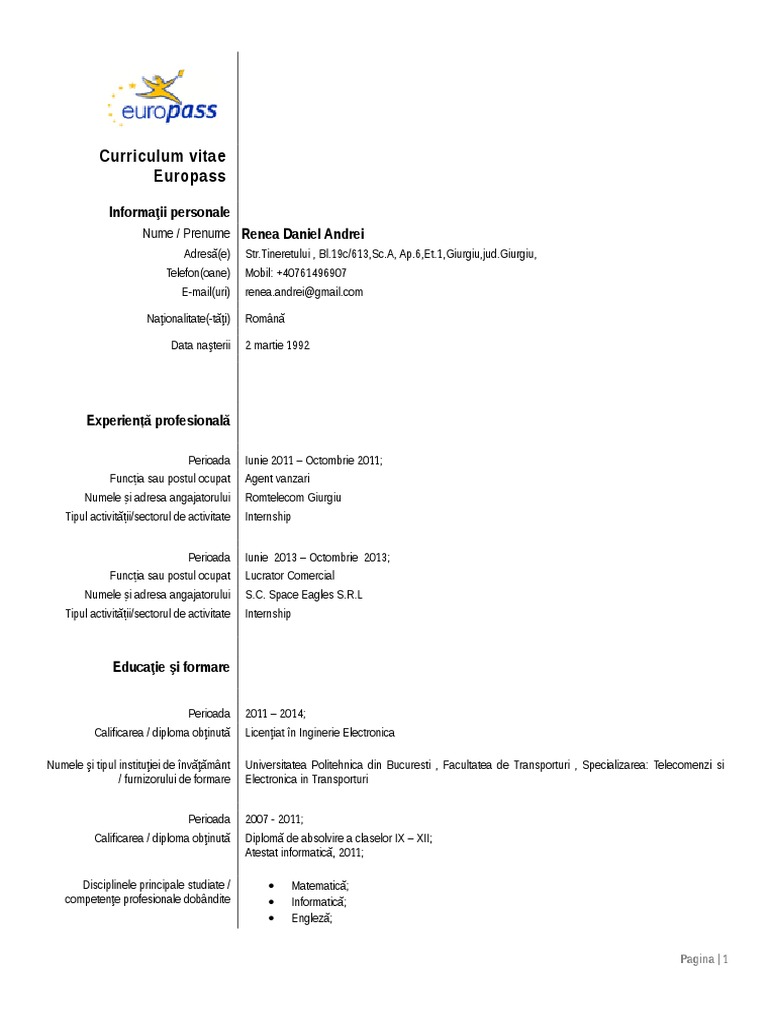 Descărcați fișier editabil doc sau gata de printat pdf. Dacă cv ul în română nu este completat atunci cel în engleză va deveni cel primar și va fi. La youtube ai 5 secunde până să poţi apăsa butonul skip pentru a vedea un videoclip interesant. Ramona grigore lucrator comercial.