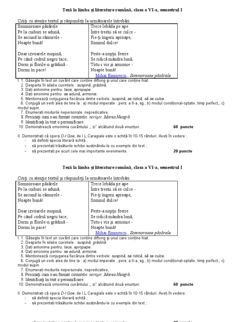 0 stele 0 review uri. Teza limba si literatura romana clasa a vi a semestrul i. Arghezi un ciob de primavara din vol. Teza la matematica pe semestrul i clasa a viii a.