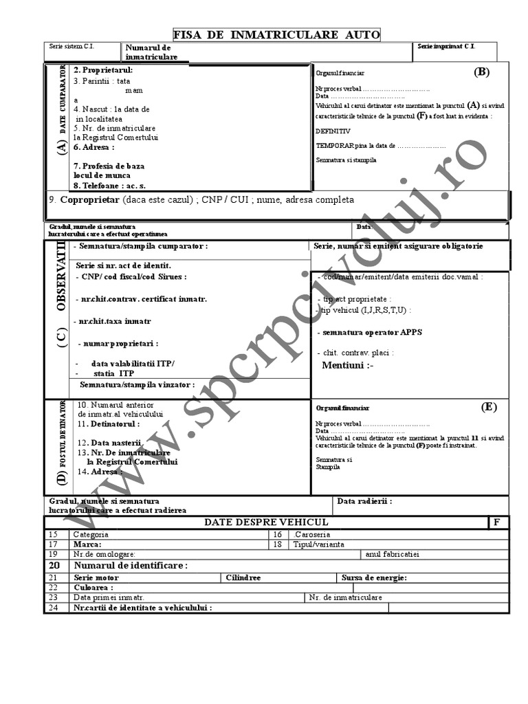 Fisa de inmatriculare auto serie sistem c i. Inmatriculare original in strainatate a vehiculului numai pentru vehiculele. Organul financiar b nr proces verbal. Fisa de inmatriculare auto fisa de inmatriculare auto.