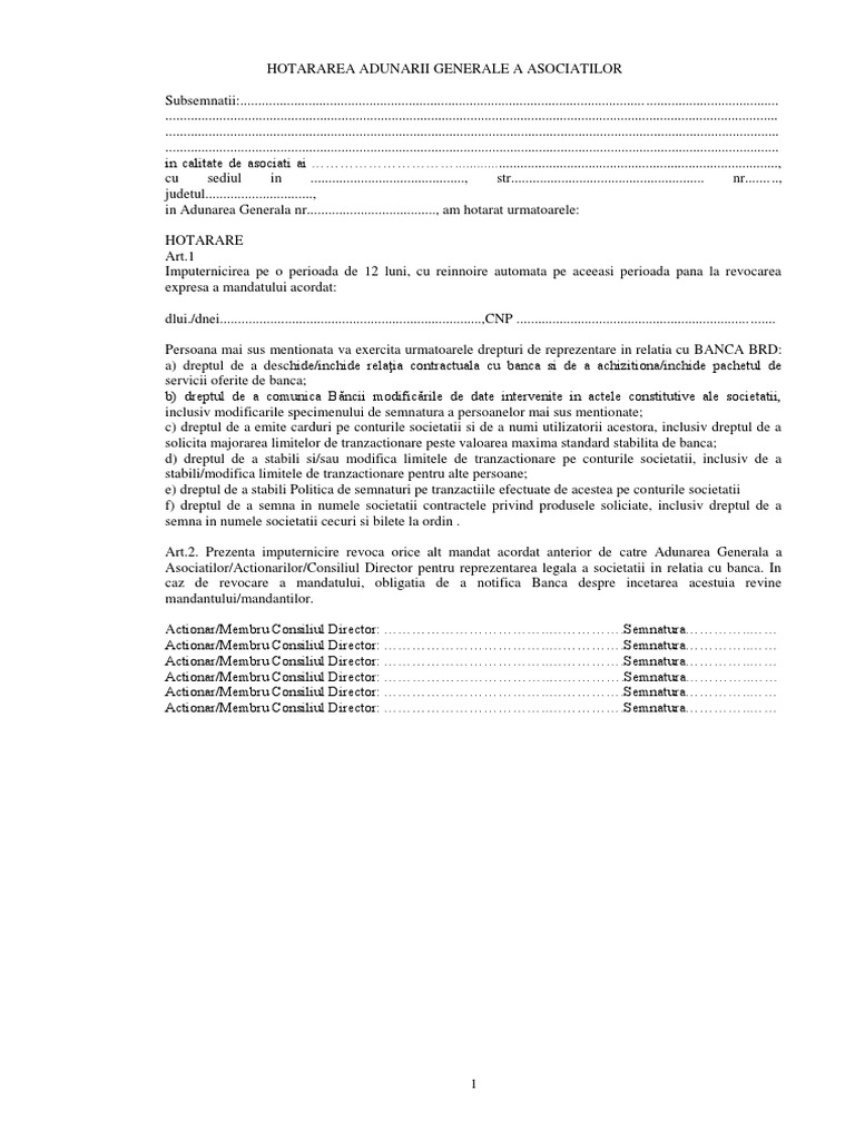 Descarcati gratuit cea mai buna varianta de statute procuri contracte imputerniciri cereri decizii autorizatii coduri legi ordonante 2015. Kontra utilizator 12 19 24 aprilie 2017. 2 13 2007 8 27 00 am other titles. Daca in cazul srl ului cu mai multi asociati conducerea este asigurata de catre adunarea generala a asociatilor prin hotarare in cazul asociatului unic acesta indeplineste atributiile aga dar actul pe care il emite se numeste decizie.