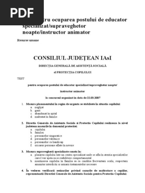 Model subiecte concurs dgaspc. Definitii operationale b definitia neglijärii 2 puncte enumerarea detalierea formelor neglijärii 4 uncte 28 11 2 1. Subiecte concurs anfp gov ro subiect în situaţia angajării răspunderii disciplinare pentru una dintre sancţiunile disciplinare la alegere precizaţi termenul maxim în care poate fi aplicată cine şi în ce condiţii o poate aplica şi în ce termen şi cum intervine radierea conform legii nr. 188 1999 privind statutul funcţionarilor publici republicată cu modificările şi. 7 2004 r1 privind codul de conduită a funcţionarilor publici constituţia româniei proba suplimentara de verificare a cunostintelor in domeniul it.