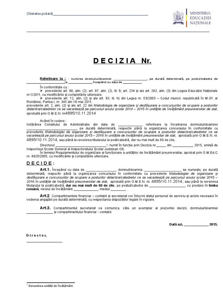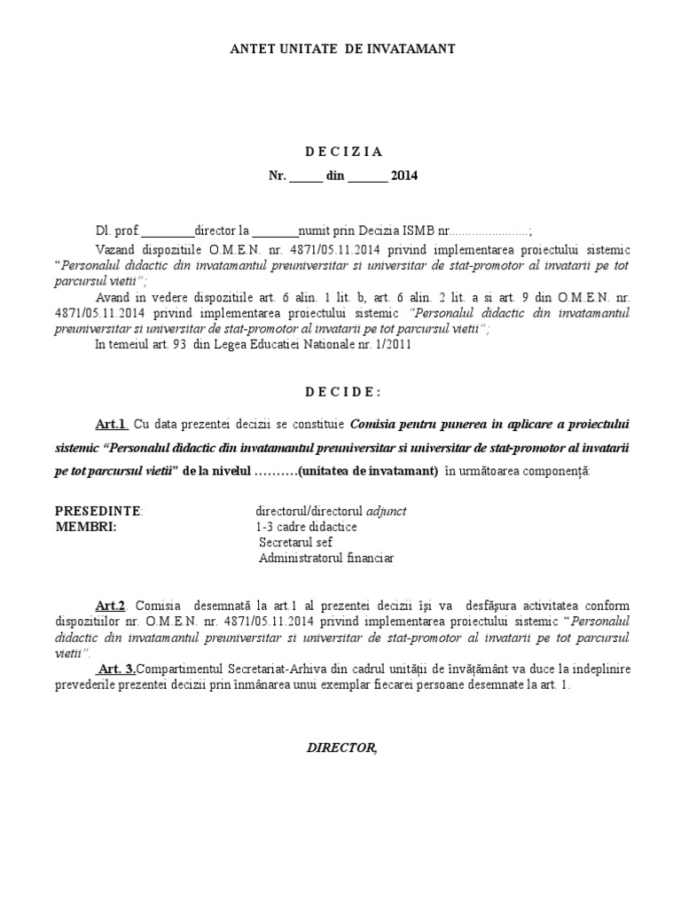 Modele decizii invatamant preuniversitar 2016. Modele acte site ul tau cu modele de acte modele de decizii average. 27 din 4 09 2017 contrat colectiv de munca unic la nivel de sector de activez invatamant preuniversitar 2017 modèle de pv folosit pentru algerea liderului clasei atentie. Privind interzicerea segregării şcolare în unităţile de învăţământ preuniversitar. Modele subiecte en 2016 9.