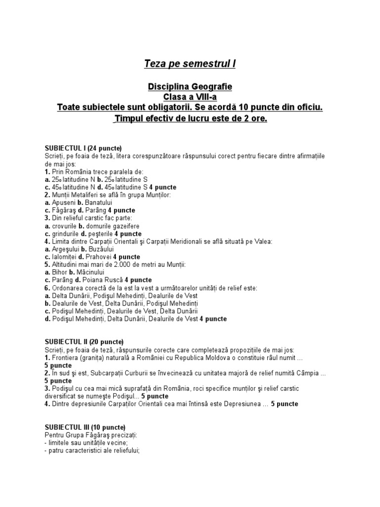 Toate subiectele sunt obligatorii. Acest sit folosește cookie uri. Vreau si eu modele de teza la geografie pe sem 2 clasa a 8a site vreu va rog. Sem ii an scolar 2007 2008.