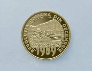 Aversul monedei din alamă pentru colecţionare prezintă un tânăr arătând semnul victoriei şi ţinând tricolorul fără stemă simbol al revoluţiei române din decembrie 1989 inscripţia în arc de cerc romania stema româniei anul de emisiune 2019 valoarea nominală 50 bani şi litera n într un cerc ca semn distinctiv al piesei pentru colecţionare. Am înțeles că s c.