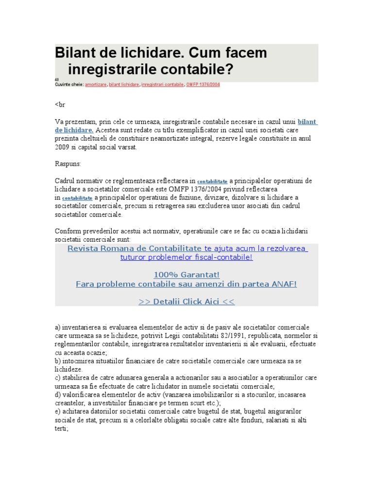 458 5 lei 2801 c. Raspunsul oferit este in concordanta cu legislatia in vigoare la data de 08 nov 2019. No replies to this topic 1 mihaelaaaa1. Dizolvare si lichidare societate.