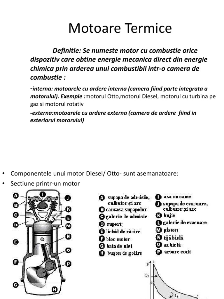 Astfel putem spune că motorul cu ardere internă cu piston este un motor termic care prin evoluția amestecului combustibil transformă energia termică în lucru mecanic. Motorul cu abur este un motor termic cu ardere externă care transformă energia termică a aburului în lucru mecanic. Motorul cu abur este un motor termic cu ardere externă care transformă energia termică a aburului în lucru mecanic. Pistonul se misca intr un cilindru inchis la un capat de chiulasa.