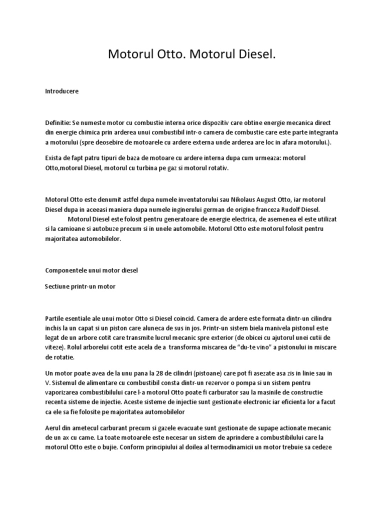 Referate noi adaugate la istorie. Exista dezavantaje daca pun pe o astra g pe spate distantiere de 2cm pe niste jante 16 9j. Diesel si otto motor diesel si otto motorul diesel si otto referat. Felicitari eu la 60000 km pe an abia amortizez suma de 1500 2000 e dintre benzina si diesel si acum legatura cu motorul decat sa dau 4000 ron pe.
