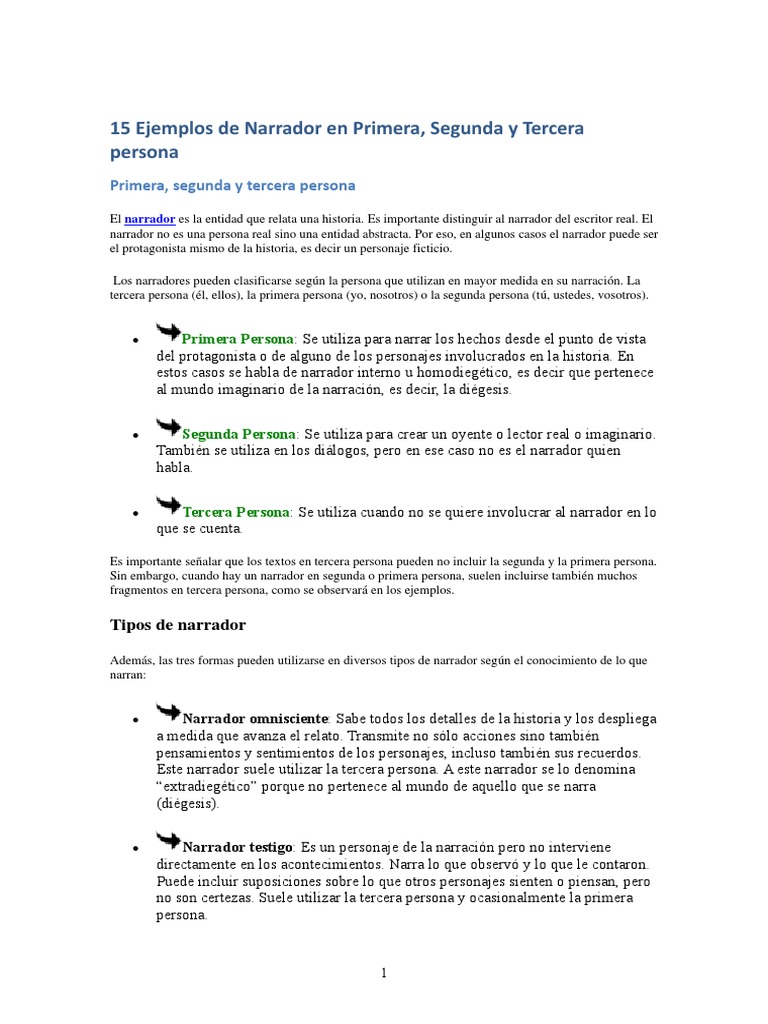 Narrador 1 2 y 3 persona. Encuentra una respuesta a tu pregunta ejemplos de narrador en 1 2 y 3 persona el narrador es la entidad que relata una historia. Yo mi me conmigo. 4 utiliza la narración iterativa cuando habla de la capa. Nosotros y nos nosotras y nos.