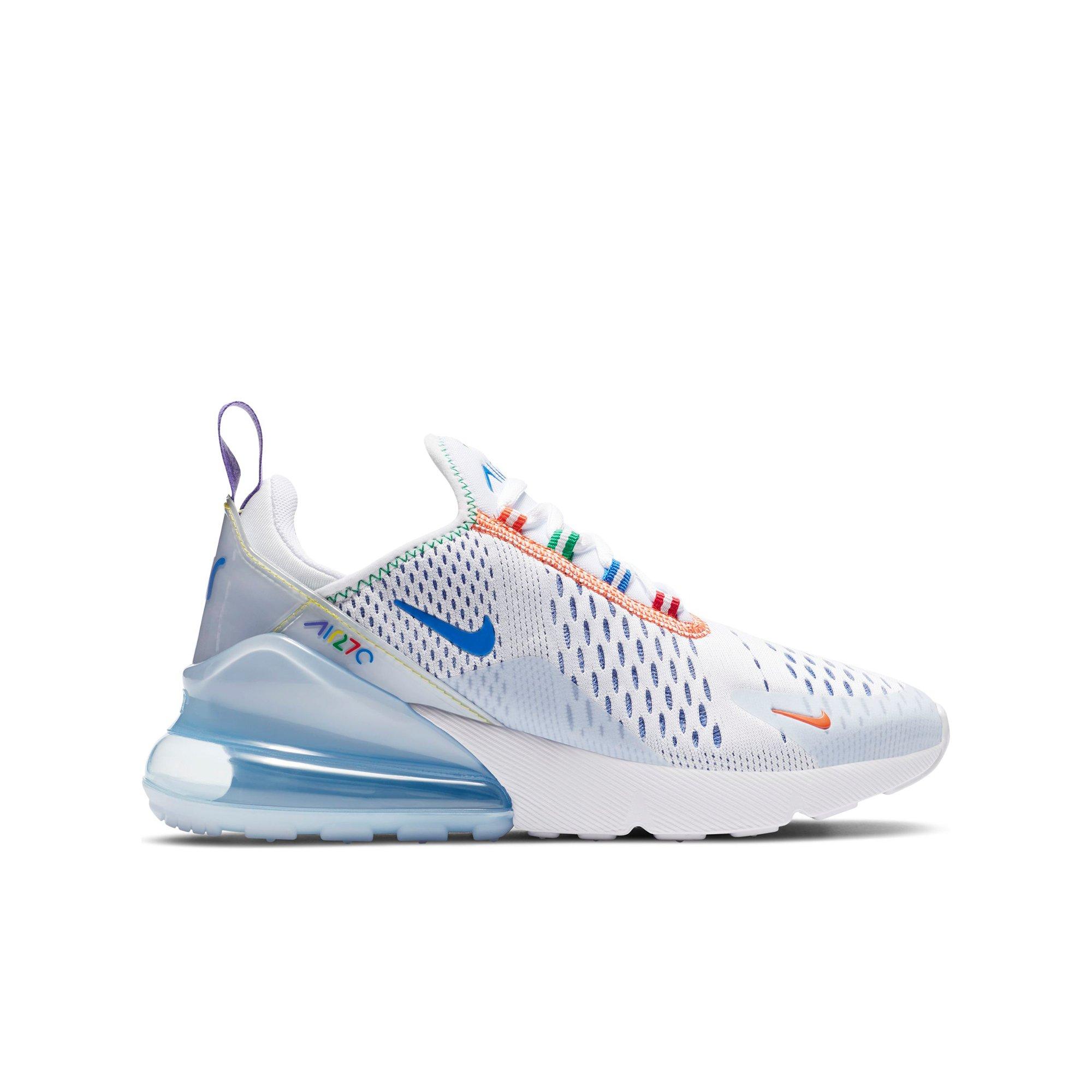 Nike air max 270 womens blue and white. The model offered a larger than ever max air unit and stood out as the first air max shoe that was specifically intended for casual wear. Nike air max 270 extreme boys preschool. Reaching new heights as the first casual nike shoe built with nike s air technology the air max 270 boasted the tallest air unit to date when it debuted only to be outdone by the nike air max 720 shortly after. The polyurethane air sole is translucent and exposed on the perimeter so everyone can see your elevated air game.